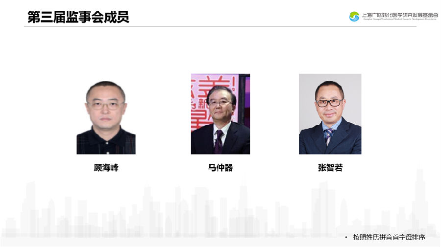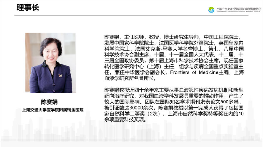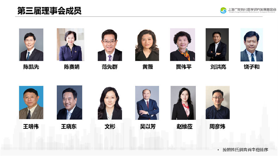 8月31日下午,上海广慈转化医学研究发展基金会第二届理事会第8次会议、第三届理事会第1次会议暨换届大会顺利召开。基金会理事长陈赛娟院士,秘书长汪敏女士,理事陈凯先院士、王晓东院士、王明伟教授、赵维莅教授、黄薇教授、文彬女士、刘洪亮先生、周彦炜先生等,监事马仲器先生、顾海峰先生、张智若先生出席会议。