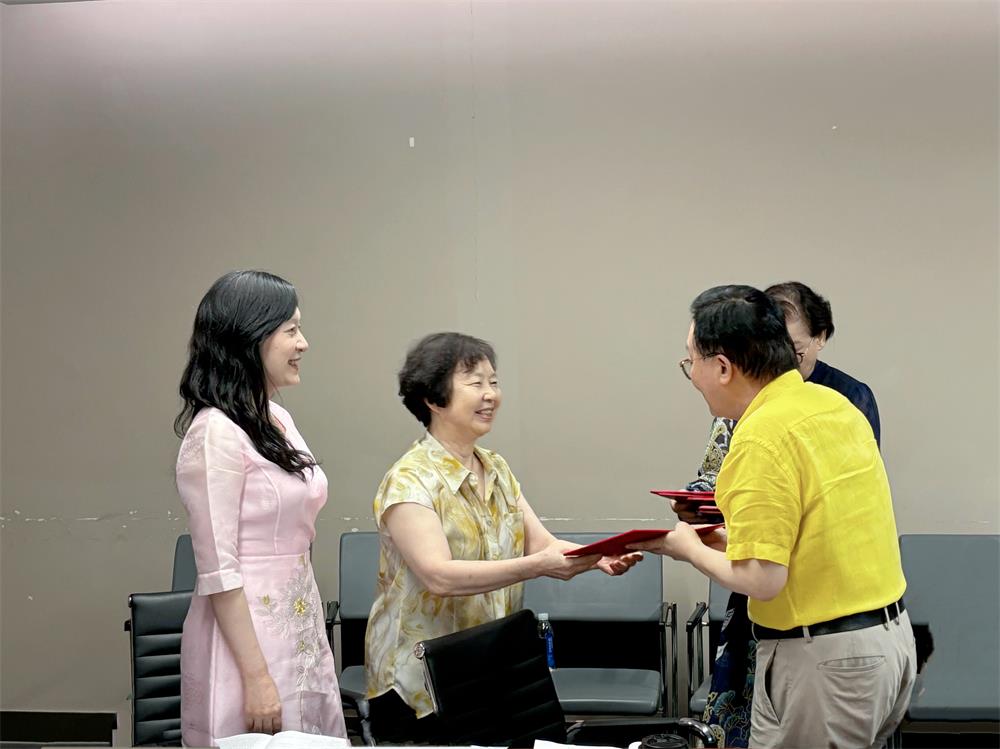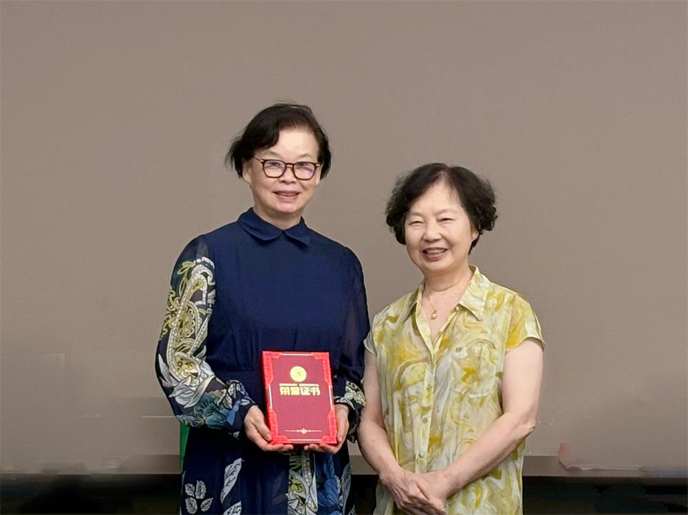 基金会理事长陈赛娟院士为离任理事汪敏秘书长颁发荣誉证书,感谢其任第一、二届理事/秘书长以来,为公益慈善及转化医学事业的发展作出的突出贡献!