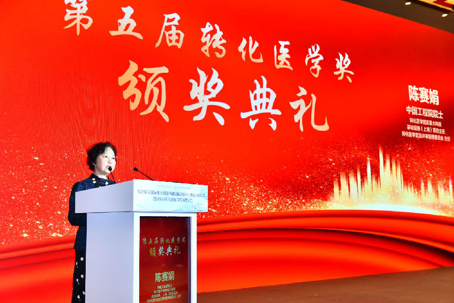 转化医学奖励计划评审管理委员会主任陈赛娟院士为颁奖典礼致辞,并指出:转化医学奖有着鲜明的特点,不唯帽子,不唯论文,突出产学研结合的转化研究成果。“面向人民生命健康”是我们转化研究的目标和任务。我们医学科学研究与企业紧密合作,追求更大范围、更深程度和更高水平的产学研的深度融合。