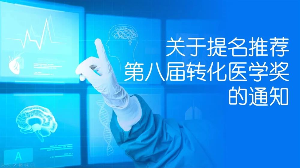 根据《转化医学奖励计划管理办法》,第八届转化医学奖的提名工作已开始,至2025年5月31日结束,期待在基础研究、临床医疗、药学研究和应用领域取得重要创新性成就,以及科研成果有效转化的专家学者、临床医生和科研工作者积极关注。尤其在成果转化应用方面取得突出成绩者,优先推荐。