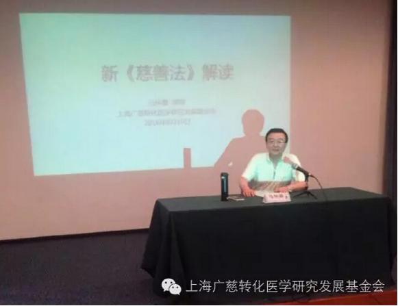 8月10日上午,在瑞金医院9号楼14楼会议室,上海国际金融学院副院长、上海市慈善基金会法律顾问、上海广慈转化医学研究发展基金会监事长、上海慈善癌症研究中心副主任马仲器先生就《慈善法》予以解读,上海广慈转化医学研究发展基金会理事/秘书长汪敏主持了此次会议,上海市儿童健康基金会、上海慈爱公益基金会、上海蓝海公益基金会等20多家基金会的代表出席了此次会议。