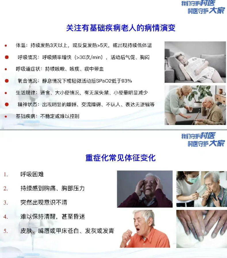 患者一旦出现呼吸困难、持续感到胸痛、胸部压力;突然出现意识不清;难以保持清醒,甚至昏迷;皮肤、嘴唇或甲床苍白,发灰或发青等症状,就是重症化常见体征变化。陈尔真强调,老年人易发生“沉默性缺氧”,一旦疾病有进展,需立即启动转诊。